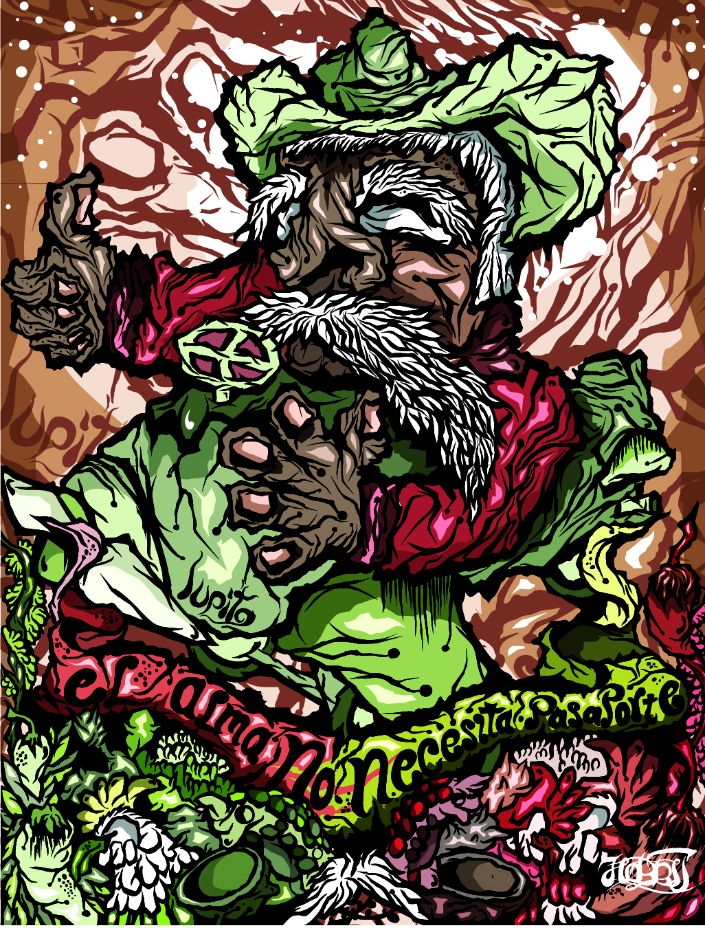 Describing his range of output as mixed media, and mostly sticking to his preferred arsenal of acrylic and cans, Gerardo’s illustration is noticeably coloured by the rich contrasting palette associated with the best of Mexican art and could be described as psychedelic folk graffiti, which incorporates the flow and palette of impressionism with his unique textured colouring technique. His range is pretty varied too; he’s worked on illustration for magazines, album artwork, wall murals, skate decks and event posters and also sculpture. His true love? Wall art, which has seen him work with some of the world’s leading muralists, including the legendary Aryz.