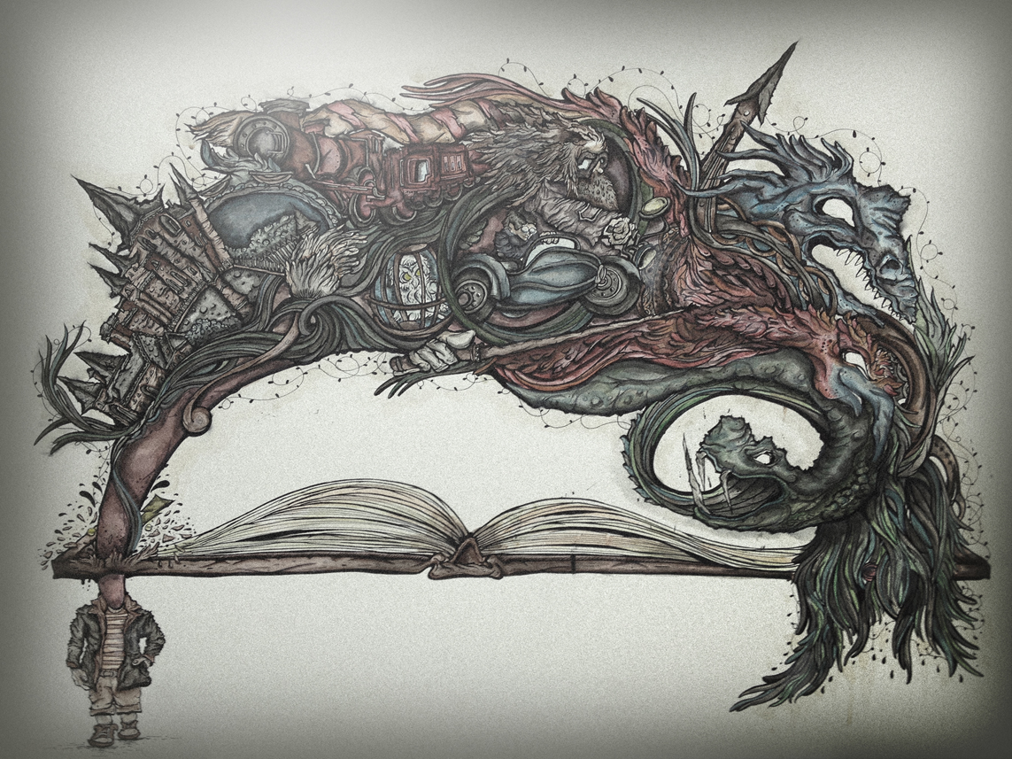 VC: I love a lot of stuff, not that it's a direct influence on my work, that is hard to say, but they are inspiring artists to me, here's a none exhaustive list… Crumb, Jean Giraud aka Moebius, John Heartfield, Monthy Python, Ralph Steadman, Pratt, Alberto Breccia, Chris Ware, Warhol, Rauschenberg, Peter Beard, Tardi, Beb Deum, Frank Miller, Hergé, Dubuffet, Gustave Doré, John Tenniel, Basquiat, and many others…