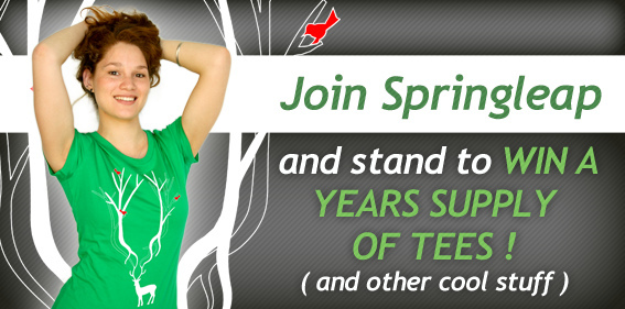 To stand a chance of winning all you need to do is sign up with us. The winner will be randomly selected and announced on June 30 2012. Our winner will receive 2 FREE t-shirts every month for a year! Springleap will also take care of the shipping costs and will send the tees out in 3 month intervals .