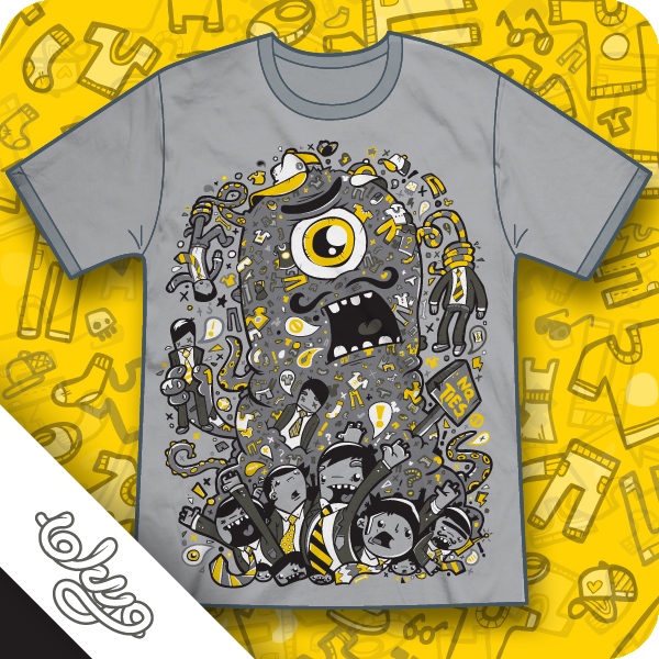 The illustration is all about casual clothes taking over! The Suits and ties run for cover as an Invader casually roams past! Made out of everyday clothing, picking up the dreaded business folk in his path.