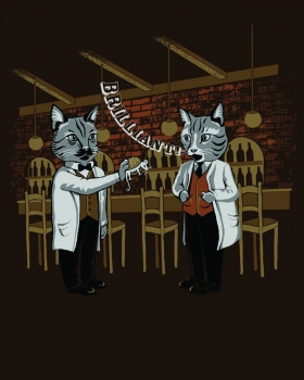 Here’s just a couple of gentlemen cats hangin’ out at the pub experimenting with their food.