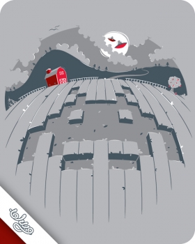 Crop Circles gone retro! Was just playing around with a circles vs squares theme and this materialized, was quite stok’d that it all seems to fit together so well, with crop circles being made by aliens and then using the space invaders symbol for the alternate squares.