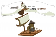 The story suggests people to stop drinking all by themselves like the stuck pig in the design, and start "sharing the warmth" with someone.