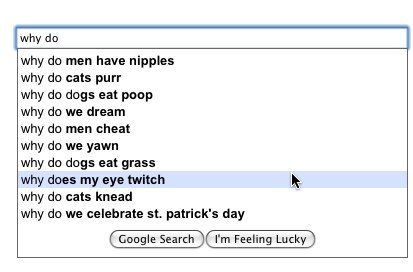 | Top 10 funniest Google suggest results shoutOut on 30/7/10 by Danya in peeps | on 18/8/11 by amyabrahams | 1