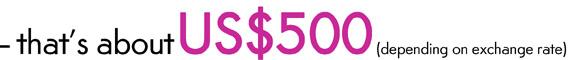 - The US$500 (£350 / €400 / ZAR4000) is cash in total.